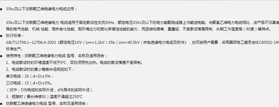 交聯聚乙烯絕緣聚氯乙烯護套電力電纜”相關內容,掌握最專業全面的